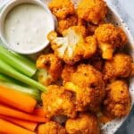 Yes! This Air Fryer Buffalo Cauliflower Recipe is vegan as is, assuming your hot sauce doesn’t contain animal products. Always check the label to be sure.