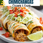 For a festive dinner or party, I slice the chimichangas into bite-sized pieces and arrange them on a platter with mini bowls of guacamole, queso, and salsa for dipping. It’s a crowd-pleaser and makes snacking fun!