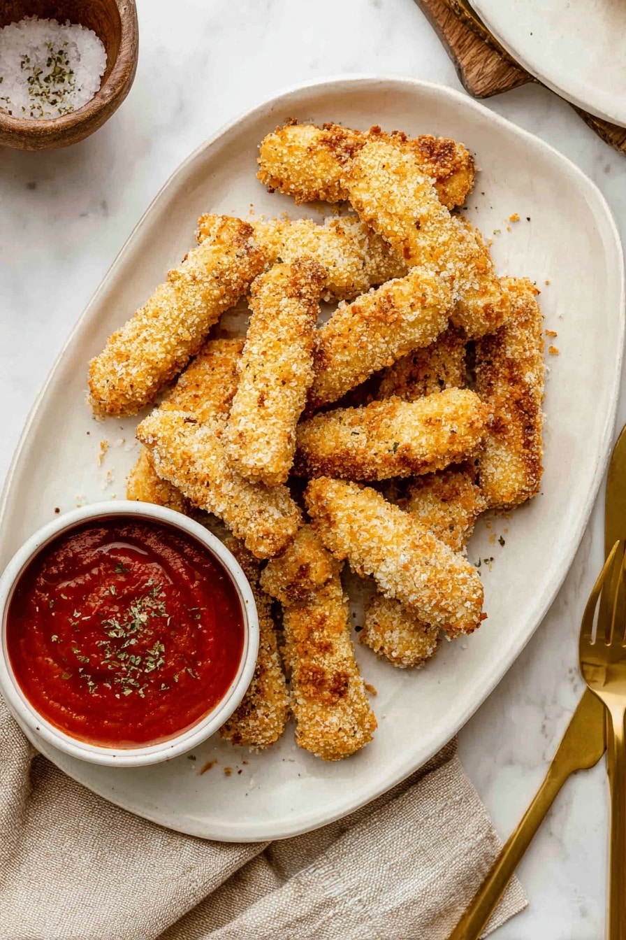 Freezing is a lifesaver with this recipe! Freeze your breaded sticks on a tray first so they don’t stick together, then transfer to a freezer-safe bag. From frozen, you can bake them straight—no need to thaw. This way, you’ve always got a quick snack on hand.