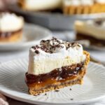 - Keep the pie chilled until serving as room temperature softens the biscuit and caramel layers.