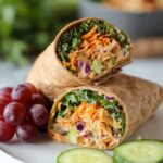 Great question! The trick is to assemble the wrap right before eating. Keep the slaw mixture and lettuce separate, and don’t wrap too tightly. Using crunchy slaw instead of watery veggies helps, plus adding lettuce as a barrier inside the wrap maintains crispness.