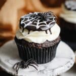 Freezing these cupcakes can be tricky because of the marshmallow webs and candy melts, but if you want to prep ahead, I recommend freezing the cupcakes without decorations. Freeze them wrapped individually in plastic wrap, then frost and decorate after thawing. This keeps everything fresh and pretty.