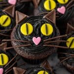 Delightfully spooky Black Cat Cookies made with Devil’s Food cake mix, rich black cocoa frosting, and fun edible decorations perfect for Halloween or themed parties.