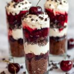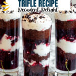 This Black Forest Trifle is a decadent layered dessert featuring chocolate cake cubes, a rich cherry compote, stabilized whipped cream, and mini semi-sweet chocolate chips. Perfect for gatherings, it combines the classic flavors of Black Forest cake in an elegant, easy-to-assemble trifle format.
