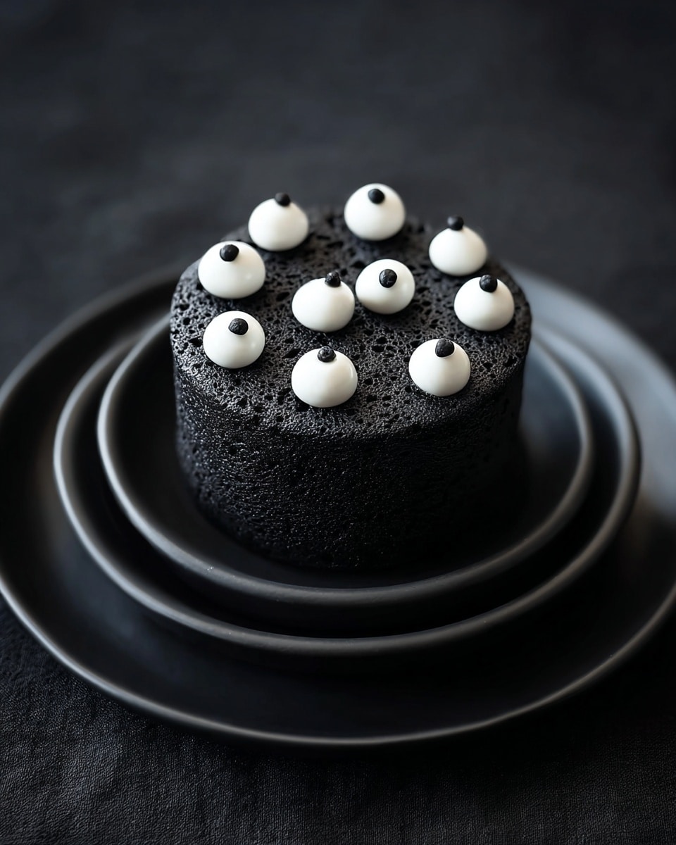 - Cool and garnish: Let the cake cool for a few minutes and top with candy eyeballs if desired.