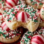 These Candy Cane Kiss Cookies combine classic sugar cookie dough with festive peppermint flavor, coated in colorful sprinkles and topped with candy cane flavored Hershey’s Kisses. Perfect for holiday celebrations, these soft cookies are chilled before baking to maintain their shape and feature a delightful peppermint twist.