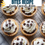 - Garnish and serve: Sprinkle additional mini chocolate chips on top and dust with powdered sugar before serving. Enjoy your Cannoli Bites!