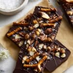 This bark pairs wonderfully with a hot cup of apple cider or a creamy latte. For something savory on the side, simple cheese and charcuterie boards complement the sweet and salty flavors in the bark perfectly.