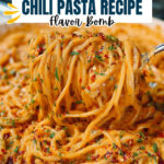 - Garnish and serve: Garnish the pasta with extra chili crisp and fresh parsley before serving for added flavor and color.