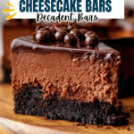 Decadent Chocolate Cheesecake Bars featuring a crunchy Oreo crust, rich chocolate cheesecake filling, and a luscious chocolate ganache topping. Perfect for chocolate lovers seeking a creamy, indulgent dessert that’s easy to make and sure to impress.