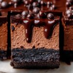 Decadent Chocolate Cheesecake Bars featuring a crunchy Oreo crust, rich chocolate cheesecake filling, and a luscious chocolate ganache topping. Perfect for chocolate lovers seeking a creamy, indulgent dessert that’s easy to make and sure to impress.