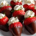 - Dip Strawberries in Chocolate: Dip each strawberry into the melted chocolate, coating them evenly. Place the dipped strawberries on the parchment-lined baking sheet to let the chocolate set.