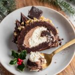 For a holiday party, I’ve presented the yule log on a wooden board surrounded by pinecones, cinnamon sticks, and cranberries for a rustic festive vibe. Another times, I’ve sliced it into rounds and stacked them in a pyramid shape on a cake stand, creating a playful, modern twist on the classic presentation that always gets “oohs” and “aahs.”