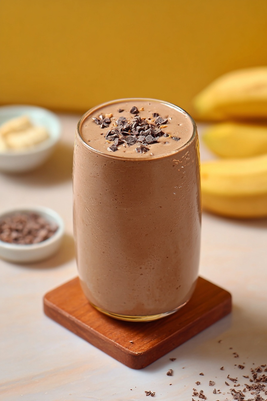 For parties or family breakfasts, I pour this Chocolate Peanut Butter Protein Smoothie into mason jars topped with whipped coconut cream, chia seeds, and a drizzle of peanut butter. Kids especially love it served with a colorful straw and a side of fresh fruit.