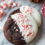 Delight in these festive Dark Chocolate Candy Cane Cookies featuring rich cocoa flavors and a peppermint twist, topped with melted white chocolate and crushed candy canes for the perfect holiday treat.