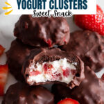 Delicious and refreshing Chocolate Strawberry Yogurt Clusters made with fresh strawberries, creamy Greek yogurt, and coated in rich semi-sweet chocolate. These frozen treats are perfect for a healthy dessert or snack that combines fruity freshness with indulgent chocolate.