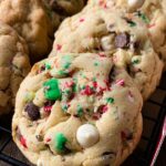 Delight in these festive Christmas Chocolate Chip Cookies, loaded with mini semi-sweet and white chocolate chips, festive red, green, and white sprinkles, and a hint of warm cinnamon. Perfectly soft and chewy with a buttery base, these cookies are a holiday favorite that’s easy to make and sure to bring a smile to your celebrations.