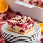 Not at all! This cake is perfect on its own, but if you like, a light orange glaze or dusting of powdered sugar adds a pretty finishing touch without overpowering the fresh cranberry flavor.