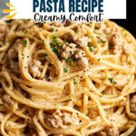 Short pasta shapes like penne, rotini, or fusilli work best because they catch the creamy sauce well. Fettuccine or other long pastas can also work, but you’ll need a wider pan to cook evenly.