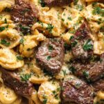 Garlic Steak Tortellini is a decadent and flavorful dish featuring tender seared sirloin steak bites tossed with cheese tortellini in a rich, creamy garlic butter sauce. Perfect for a hearty dinner, this recipe balances the bold flavors of garlic and Parmesan with the savory steak and silky pasta.