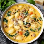 This Creamy Italian Sausage Gnocchi Soup is a comforting and hearty dish featuring flavorful Italian sausage, tender gnocchi, and a creamy broth enriched with Parmesan and fresh spinach. Perfect for a cozy meal, it combines the rustic charm of Italian seasonings with a luscious texture that will satisfy any soup lover.