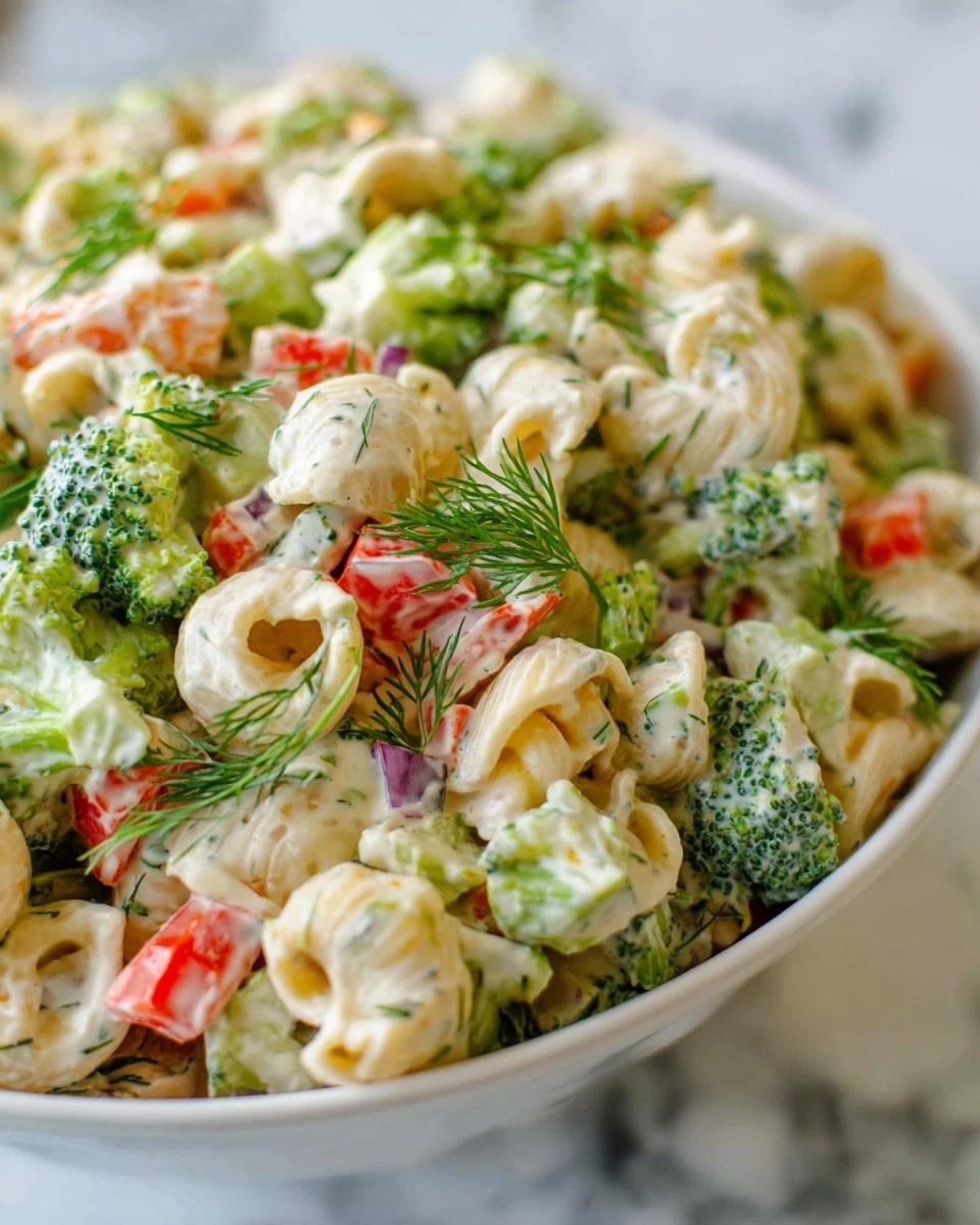 I store leftovers in airtight containers in the fridge for up to 3 days. The pasta tends to soak up dressing as it sits, so I recommend giving it a quick stir before serving to redistribute that creamy goodness.