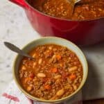 This Creamy White Bean Pumpkin Chili Recipe freezes wonderfully. I portion it into freezer-safe containers and freeze for up to 3 months. Just be sure to leave out the cream if you plan to freeze it—add that fresh when you thaw and reheat to keep the texture silky.