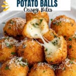 Crispy and cheesy mashed potato balls made from leftover mashed potatoes, coated in crunchy panko breadcrumbs and fried until golden brown. These make a perfect snack or appetizer and can be cooked traditionally by frying or air frying for a lighter version.