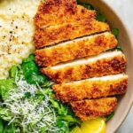 - Coat Chicken: Dredge each chicken breast first in the cornstarch mixture, shaking off excess, then dip into the beaten eggs, and finally coat thoroughly with the panko-parmesan mixture, pressing to adhere.