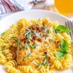 I love topping the finished chicken with fresh chopped basil—not only does it add a pop of color, but the herbal brightness balances all the richness perfectly. Sometimes I also sprinkle a little extra parmesan right before serving for a cheesy finish that everyone appreciates.