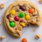 The moment the cookies come out of the oven, quickly top each with a few extra chocolate chips, peanut butter chips, and M&M’s. I love this little trick—it amps up the look and adds fresh gooey pockets on top. Let them cool right on the baking sheet for about 20 minutes to fully set. This resting period makes a huge difference and stops the cookies from being doughy or crumbly.