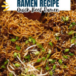 A quick and flavorful Asian beef ramen noodles recipe featuring caramelized ground beef, a savory sauce blend, and crunchy bean sprouts, perfect for a speedy weeknight meal.