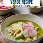 Chicken Pozole Verde Soup is a flavorful and hearty Mexican green pozole made with tender shredded chicken, tomatillos, poblano and jalapeño peppers, hominy, and a blend of aromatic spices. This comforting soup is perfect for family dinners and is served with fresh toppings like radishes, avocado, jalapeños, lime, and cilantro for a vibrant, delicious meal.