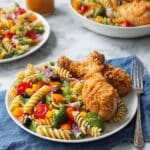 I usually top my pasta salad with a sprinkle of freshly grated parmesan or a handful of chopped fresh basil when serving. It adds a pop of color and that extra layer of fresh, herby flavor I adore. Sometimes, a few cracked black peppercorns or a drizzle of good olive oil satin off the salad beautifully.