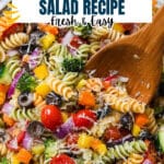 Absolutely! While tri-color rotini works great because it holds dressing well, you can substitute with penne, farfalle (bowtie), or fusilli. Just make sure to cook it al dente so it doesn’t get mushy in the salad.