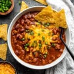 - Season and Serve: Taste the chili and adjust salt if needed. Serve hot topped with your favorite chili garnishes such as sour cream, shredded cheese, green onions, or tortilla chips.