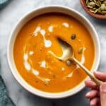 I usually store leftover pumpkin soup in airtight containers in the fridge for up to 4 days. When you reheat, give it a good stir to restore its creamy texture because the pumpkin can settle or thicken overnight.