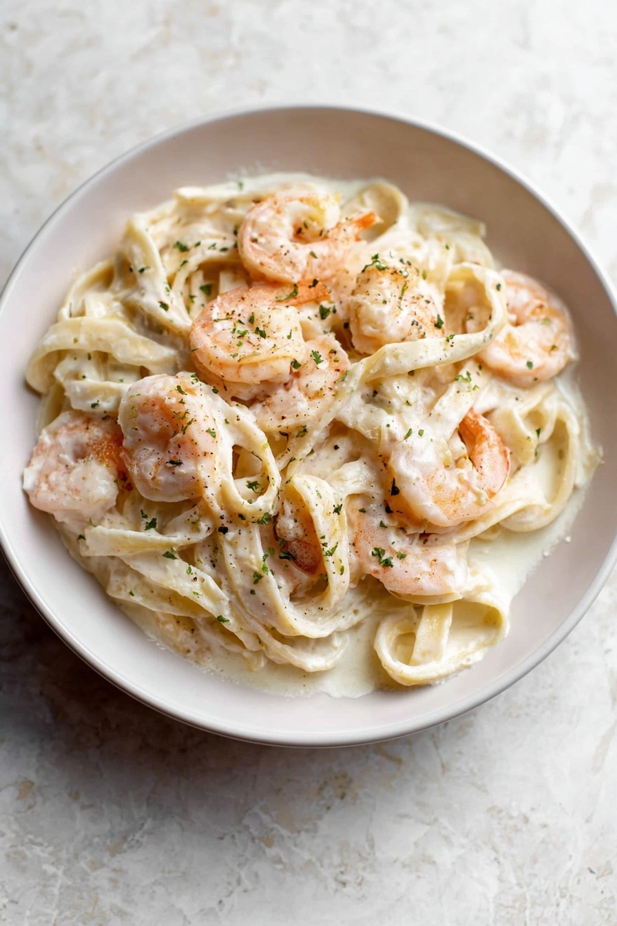For special occasions, I like to plate this dish in shallow bowls to highlight the shrimp nestled on top of the fettuccine. Garnishing with edible flowers or finely shaved parmesan curls adds a subtle elegance that makes dinner feel fancy without extra effort.