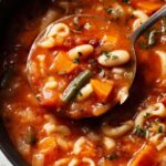 A hearty and classic Italian minestrone soup loaded with fresh vegetables, beans, and elbow macaroni simmered in a flavorful tomato broth. Perfect for a comforting meal packed with nutrients and deliciousness.