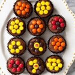 - Chocolate + Fall Flavors: Rich chocolate cupcakes and buttercream pair beautifully with the colorful M&M’s for a festive taste and look.