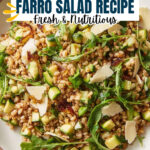 A hearty and flavorful Best-Ever Farro Salad combining nutty whole-grain farro with a tangy apple cider vinegar dressing, crisp shallots, fresh arugula, green apple, Parmesan cheese, toasted pecans, and fresh herbs for a wholesome, refreshing meal or side dish.