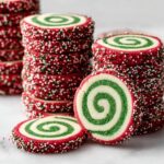 These festive Christmas Pinwheel Cookies are a delightful holiday treat featuring red, green, and white swirled dough rolled into elegant pinwheels. They are sugar cookies coated with colorful nonpareils, delivering both a festive look and a sweet crunch. Perfect for holiday parties or gifting, these cookies combine classic buttery sugar cookie flavors with attractive multi-colored layers for a charming seasonal presentation.