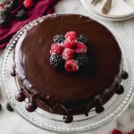 - Add Optional Toppings and Serve: Before serving, optionally top the cake with chocolate ganache that has cooled for at least 15 minutes after preparation. Slice the cake by running a knife under very hot water, drying it, and using the warm blade to cut clean slices. Serve with homemade whipped cream and berries if desired.