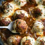 This French Onion Meatball Skillet recipe combines tender ground chicken meatballs with a rich, caramelized onion and Gruyère cheese sauce, creating a comforting and flavorful one-pan meal perfect for any occasion.
