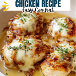 Delicious French Onion Chicken features tender chicken cutlets topped with caramelized onions, rich Gruyère cheese, and a savory sauce, creating a classic French-inspired main course.