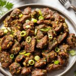 Garlic Butter Steak Bites are tender, juicy pieces of steak sautéed in a rich garlic butter sauce, garnished with fresh parsley and green onions. This quick and easy recipe delivers bold flavors perfect for a satisfying dinner or appetizer.