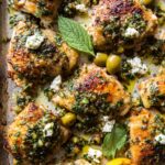 This Roasted Garlic Butter Chicken with Lemon Olive Dressing is a flavorful, aromatic dish featuring tender chicken thighs or breasts roasted with garlic, fresh herbs, and butter. The bright and tangy lemon olive dressing with fresh basil, parsley, olives, and a hint of spice perfectly complements the rich chicken, finished with creamy goat cheese for an elegant, easy-to-make dinner.