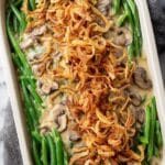 For holiday dinners, I like to serve individual portions in ramekins topped with little thyme sprigs—makes it feel extra special. Or you can create a green bean “tower” by layering in a clear trifle dish to show off all the creamy, crunchy layers.