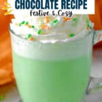 Whenever I’m hosting a St. Patrick’s Day brunch, I serve this hot chocolate in clear glass mugs so the color pops. I arrange the whipped cream and sprinkles with a small shamrock cookie beside the cup and sometimes set a tiny green paper umbrella for a playful vibe. It’s all about the little details for me!
