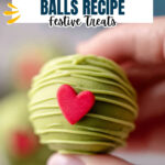 Delight in these festive Grinch Oreo Balls made with Red Velvet Oreos, cream cheese, and coated in vibrant green candy melts. Perfect for holiday gatherings or themed parties, these no-bake treats are easy to make and visually fun with red heart sprinkles to complete the iconic Grinch look.